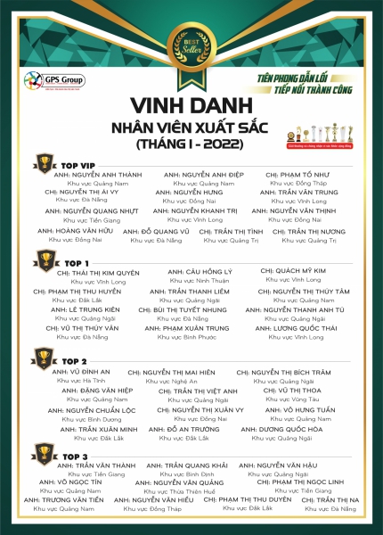 Hy vọng rằng, bảng vinh danh này sẽ là một nguồn động lực nhỏ, tiếp thêm sức mạnh để những cá nhân khác trong gia đình GPS không ngừng phấn đấu. Cùng cố gắng hết 100% công lực để tên của tất cả mọi người cùng có mặt trong 'bảng vàng' vinh danh trong tháng 2 năm 2022 nhé!!